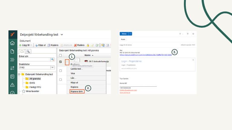Om du flyttar dokumentet/mappen till en annan mapp eller projektyta eller kanske byter namn på dokumentet/mappen så är länken fortfarande giltig.