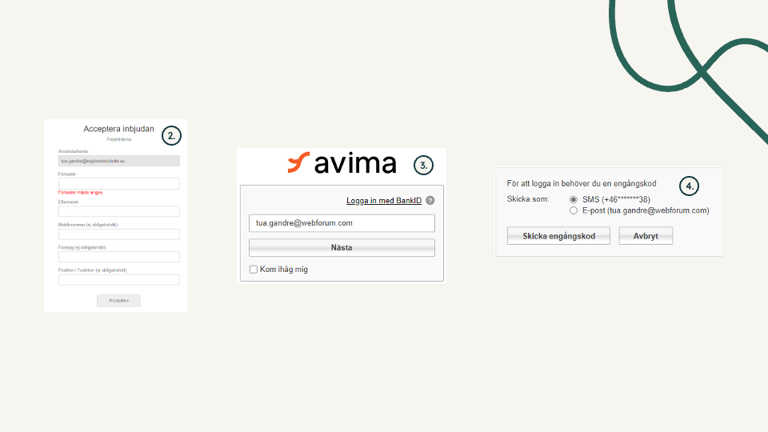 1. Klicka på länken "Acceptera" som finns i den inbjudan du fått till din e-post. Avsändaren är account@avima.app